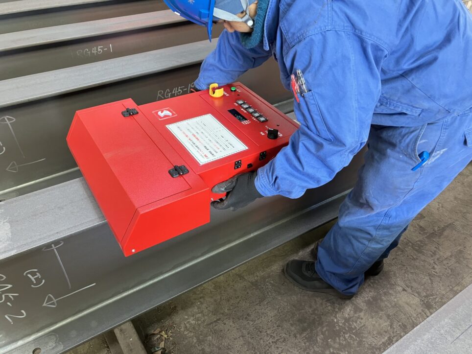 ケガキロボットを導入しました。 2025.02.19 「梁ロボ ケガキ名人」を導入しました。 ケガキ※をロボットが自動で行うことで、加工時間を短縮し、製品の作り間違えを防ぐことができるようになりました。ただし、すべてロボット任せではいけません。最後は人間が図面と照らし合わせて確認することが大切になります。より精度の高い鉄骨製作に向けて、これからも邁進してまいります。 ※ケガキとは加工する鋼材に、基準となる線や点を書き記すことです。