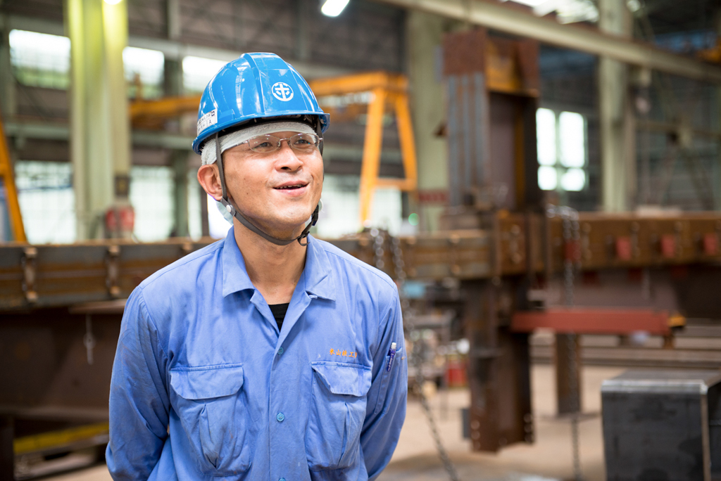 入社後は研修の一環として、3~6ヶ月程度工場内各セクションをローテーションしながら鉄骨製作技術の知識を身に付けていきます。多くの経験から製品を観察することで違う観点からの見方ができるようになり柔軟な発想が作業に反映されるようになります。
